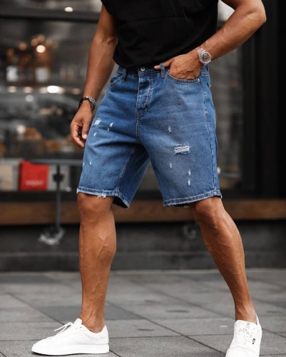 Erkek Mavi Yırtık Detaylı Şort