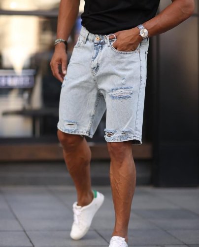 Erkek Açık Mavi Detaylı Kot Şort