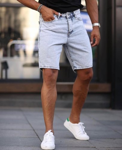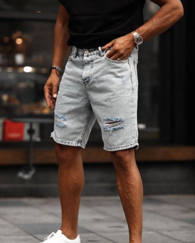 Erkek Buz Mavi Yırtık Detaylı Kot Şort