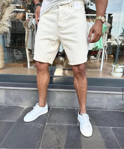 Erkek beli bağcıklı ve düğmeli bezayağı kumaş şort