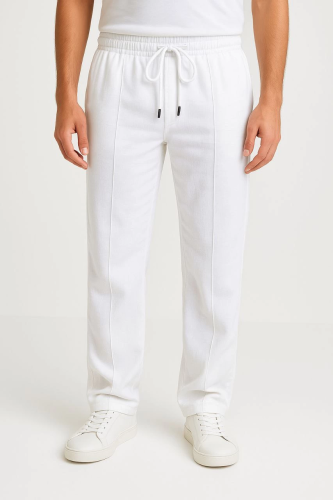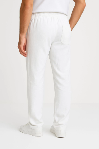 • Erkek Keten Pantolon Cepli Beli Lastikli ve Bağcıklı Nefes Alan Rahat Kalıp Yazlık ve Baharlık Günlük Giyim Şık Konforlu Boru Paça Model Beyaz