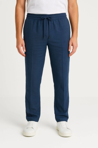 • Erkek Keten Pantolon Cepli Beli Lastikli ve Bağcıklı Nefes Alan Rahat Kalıp Yazlık ve Baharlık Günlük Giyim Şık Konforlu Boru Paça Model Lacivert