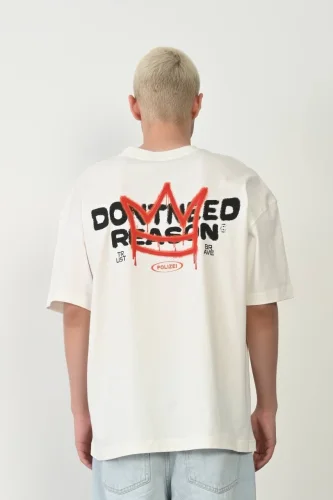 • Unisex Bisiklet Yaka Baskılı Oversize TShirt Beyaz