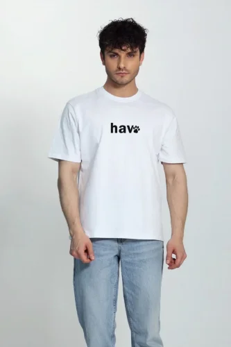 Erkek Bisiklet Yaka Kısa Kol hav Baskılı Tshirt Beyaz