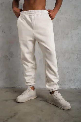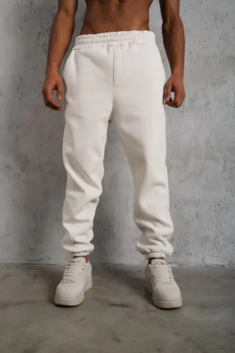 • Erkek Üç İplik Alt Eşofman Lastikli Beyaz