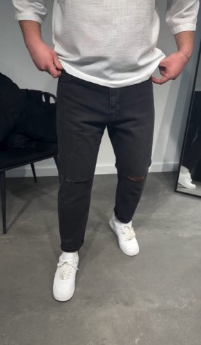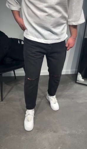 • Erkek Siyah Dizi Yırtık Boyfriend Jean