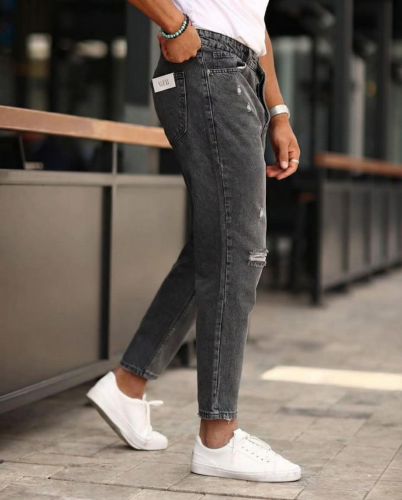 • Erkek Koyu Gri Yırtık Detaylı Boyfriend Jean