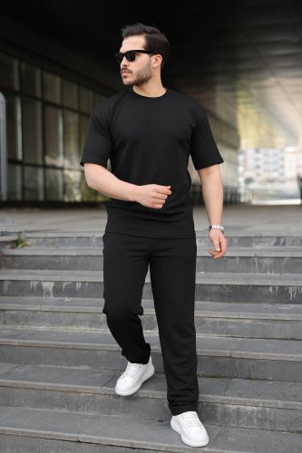 Erkek kısa kollu önden fermuarlı janjan krep tişört ve pantolon ikili takım