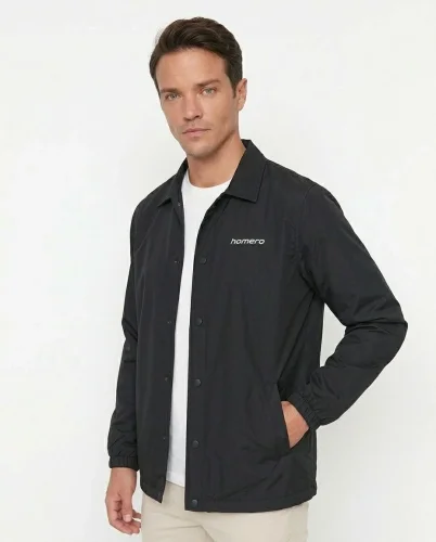 Erkek Yağmur İtici İç Astarlı Çıtçıtlı İç Cepli Dış Cepli Mevsimlik Ceket Siyah