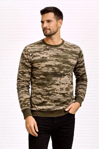• Erkek Kamuflaj Desenli 2 İplik 4 Mevsim Uzun Kollu Bisiklet Yaka Sweatshirt Kamuflaj