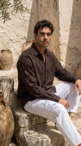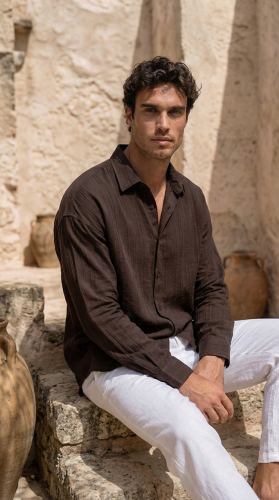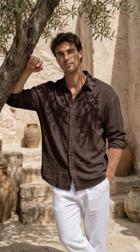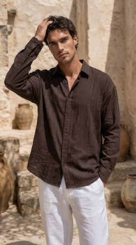 • Erkek Armürlü Yarım Oversize Müslin Gömlek