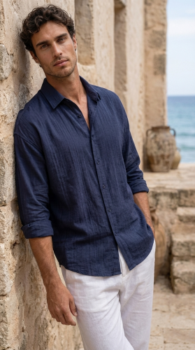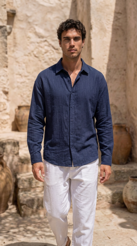 • Erkek Armürlü Yarım Oversize Müslin Gömlek