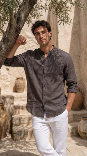 Erkek Hakim Yaka Pamuklu Keten Gömlek